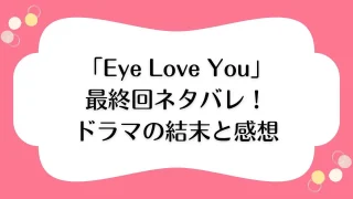 日本ドラマ アイラブユー最終回ネタバレ!ドラマの結末と感想 この記事では「アイラブユー最終回ネタバレ!ドラマの結末と感想」という内容で情報をお届けします。 ドラマ「Eye Love You(アイラブユー)」の最終回(3月27日放送)が放送されました。 ●侑里とテオはハッピーエンド? ●侑里とテオはサ... 日本ドラマ